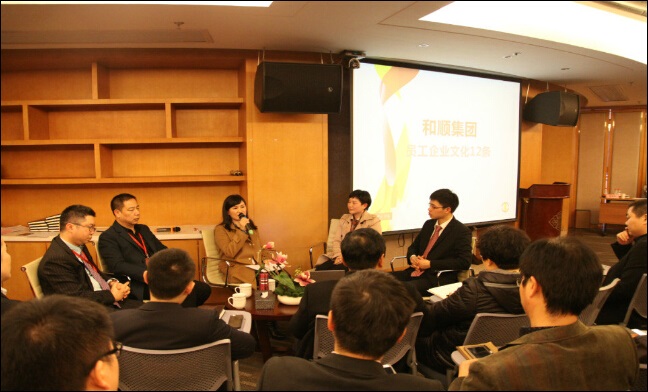 會議上午議程的主題是“2015年度年度工作總結及2016年度工作展望”,各部門、分子公司的領導、同仁作了簡要的工作匯報。下午議程的主題是企業文化論壇,分為“和順員工職務行為準則”和“和順員工企業文化12條”兩部分進行。論壇上,作為公司新老員工代表的曾立群、聶喆、周蓉、盧文斌先后與大家分享了對公司企業文化的理解,副總裁龍小珍以《和順員工企業文化12條》掀起了年會高潮。最后,集團董事長趙忠做了意義深遠的總結發言,勉勵大家努力拼搏、共創和順美好未來。