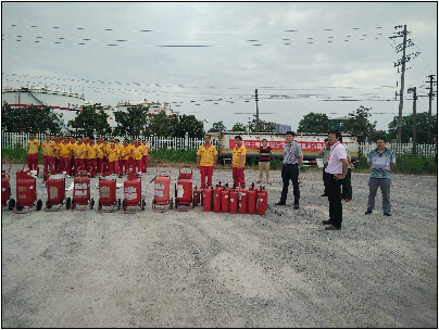上午8:30演練準時開始,消防官兵對各種滅火器具的使用進行專業講解和操作演示。演練項目包括初起火災撲救、模擬發油臺提油車輛發油過程中著火撲救、庫區儲油大罐火災撲救,演練持續2個小時.整個演練過程指揮有力、分工明確、配合默契、實戰氛圍濃厚。期間,在總公司物流中心領導及油庫管理人員的陪同下,安監局陳局長還實地察看了油庫的安全監控系統,詢問油庫安全生產工作各項措施的落實情況。
